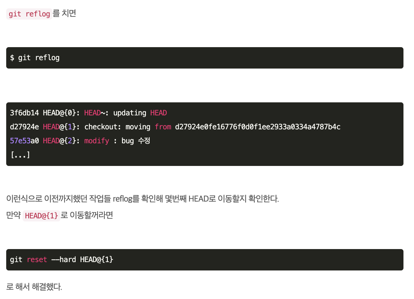 ex) $ git reset --hard HEAD~1 //커밋 하나 취소
